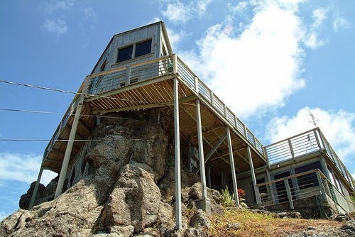 No idea what the aim of this house is; built upon half a rock? Living off the edge? The view? Whatever, but I bet the property taxes are low....hardy built upon any property!